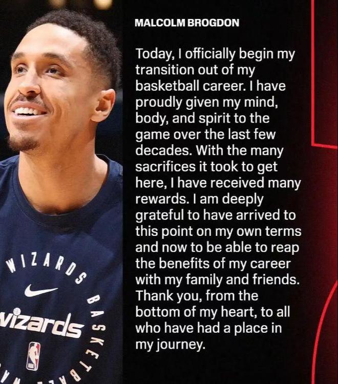 距离NBA新赛季开始仅剩6天,一则爆炸性消息震惊了联盟。据知名记者沙姆斯·查拉尼亚报道,球队后卫马尔科姆·布罗格登通过 ESPN 正式宣布决定退役,结束他九年的 NBA 职业生涯。这个突然的决定引起了整个篮球界的轩然大波。布罗格登随后发表了充满爱心的退役声明:“今天,我正式开始职业生涯的转型。几十年来,我把自己的身心和灵魂都奉献给了篮球比赛。这段旅程需要无数的牺牲,也给了我很多回报。我一时非常感谢我的家人和朋友。谁能想到,这位球员突然告别了拉罗,在不被打开的情况下写下了逆袭的传奇。” 2016年选秀大会上,布罗格登在首轮第36顺位被雄鹿队选中。当时,没有人看好这位年长新秀的前景。但在他的新秀赛季,他场均贡献10.2分和4.2次助攻,令人惊讶地击败了希尔德和英格拉姆等热门新秀,成为NBA历史上第三位以非首轮秀身份获得年度最佳新秀奖的球员。巅峰时期的他更是全面。 2022-23赛季效力凯尔特人队时,场均贡献14.9分、4.2个篮板和3.7次助攻。他凭借出色的表现获得了最佳第六人奖,成为联盟顶级替补火力。九年的职业生涯,效力过雄鹿、步行者、凯尔特人等五支球队。布罗格登留下了一份华丽的履历:常规赛463场比赛,首发296场,场均贡献15.3分、4.1个篮板、4.7次助攻。他的投篮命中率为46.3%,三分命中率为38.8%。如此出色的表现,在侍卫中实属罕见。但很少有人知道的是,光辉数据的背后却隐藏着诸多伤病——左脚跟腱撕裂、右膝软骨冲突、右膝软骨冲突。毫巴椎间盘突出症。过去五年他总共缺席了173场比赛,过去两个赛季只打了63场比赛。上赛季他效力奇才队时,因伤只打了24场比赛。虽然场均12.7分的表现依然扎实,但已经不再是巅峰状态了。布罗格登退役的决定可能是大张旗鼓的一个启示时刻。正如记者斯特凡·邦迪所说:“在NBA的职业生涯消耗太大了——无论是身体上还是精神上,他突然意识到自己失去了一部分欲望和斗志。”要知道,加盟尼克斯,布罗格登拒绝了其他球队的邀请,球队也承诺让他担任重要角色。然而,高强度的集训让他意识到了一个真相:32岁的他的身体已经承受了过大的负担,曾经支撑着他的竞技热情正在被一次又一次的伤病和旅行慢慢消磨。这个决定让尼克斯陷入被动。新赛季还剩6天,球队原本打算让布罗格登补强后场深度。现在不仅需要立即调整阵容,还需要裁掉更多DA17正式合同人员,以符合联盟规定。而对球迷来说,这何止是可惜——这位从无人问津到双料奖获得者的球员不应该在32岁的“黄金时代”轻易退役。要知道,他的职业生涯场均表现比很多现役全明星后卫都要好。如果不是伤病,他或许还能书写更多的传奇。